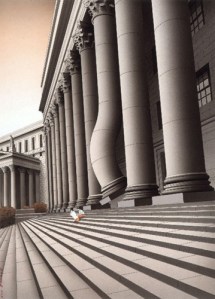 So, each page features a brilliantly rendered piece of art. There’s a caption for each picture which reflects (often humorously) on the picture. The book is a children’s book (Clark enjoyed the nonsense very much). But even adults will say, Whoa, cool, when they look at these pictures that are just…wrong.
