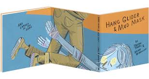 This book has a terrific gimmick. It was bound like a letter S, so there is a front cover, a middle cover and a back cover, but when you get to the back cover, because of the design, it is once again a front cover. In other words, there are two short stories in this book Hang Glider and Mud Mask and when you get to the end of Hang Glider, the cover has turned so that you can now begin Mud Mask (no flipping necessary). And the stories are connected, so it all works together very nicely.
