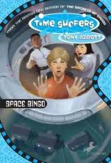 Book #1, Space Bingo starts the series in an interesting way (Tony Abbott’s exposition is always interesting–indeed all of th ebooks open up with a scene the seems to be one thing but is revealed to be something else). Ned Banks has moved to a new city far away from his home and his best friend. He has to start a new school and he’s not too happy about it. His sister has been calling him Nerd instead of Ned and the nickname is starting to spread, especially since such bad luck things are happening to him in school. So he does what any clever kid would do–he creates a communicator (and tells his best friend Ernie how to make one) so that they can talk to each other whenever they want (and not have phone charges!). When Ned turns the communicator on, however, it opens a time portal in his closet and two kids from the year 2099 come flying out.