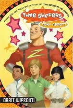 We’re still working through all of the different Tony Abbott series. And this series, Time Surfers, is another early collection of eight books about young kids going on adventures. This series was also difficult to find (although it has recently come back into print (with much better illustrations). The think I have yet been able to figure out about Abbott’s earlier series–they seem like he planned to do more. Or more specifically, they seem unfinished. I wonder if he gave up or if the publishers gave up on him.