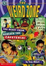 Book #3, The Beast from beneath the Cafeteria!, the janitor quite a lot. And despite the fact that he is obnoxious and claims that the school is his, he actually proves to be an asset. The beast is a gigantic dinosaur-like creature that was unexpectedly brought to life (this is the Weird Zone, after a ll) and started gorging on the food supply stored beneath the school cafeteria. In this one the whole town gets involved–indeed, the whole town gets destroyed as the dinosaur tries to eat the donut and the top of the Donut Den. He also gets stuck in the planetarium roof. There’s even genuine concern at the end of the book when the secret military base at the north of town decides to fire missiles at the monster–when one of the kids is in its clutches!