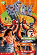 Readers will know that Clark and I love Tony Abbott. We keep looking for his older, somewhat harder to find series, and this past month the library came through with The Weird Zone, eight books set in the small town of Grover’s Mill. There’s a Secret Government UFO testing base at the north of the city, a dinosaur graveyard to the west of the city and Humongous Horror Movie Studio to the east. Living in this weird triangle between these oddities can mean only one thing–Grover’s Mill, is known to the kids as the Weird Zone (their school is even call W.Reid Elementary). The adults in town don’t seem to realize what’s going on (although, clearly they must) are called Zoners.