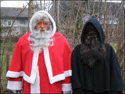 Sinterklaas comes from the Netherlands and is still active today. In the fourteenth century teachers would pass judgment on students work around Dec 6. Good students would get sweets and bad students would be beaten with a rod. Similarly Sinterklaas would arrive on Dec 5 and test childrens’ knowledge of Scripture. Those who passed received treats. Those who failed would be beaten by birch rods. This was not metaphorical—uncles would dress up and administer this. Sinterklaas was later accompanied by Zwarte Piet (Black Peter) who was a Moor and would put bad children in a sack and take them to Hell. There are obviously many racial issues with this depiction which I’m not going to get into, but he was originally “black” because he was the one who went down the chimney—later iterations are less easy to handle.