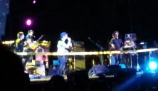 Then it was time to dance again. He rocked us some more with a great version of “Girl” (we are still trying to figure out of the chorus is “sun-eyed” or “summer” or what). And then he wrapped up the set with a batshit wild version of “E-Pro.” At the end of the song, all of the guys just started crashing into each other and falling on the floor, cables all twisted up, feedback squalling. Eventually someone was dragged off the stage by the legs and Beck brought out a Police Line tape across the stage.