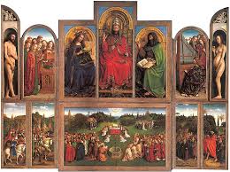 The story is broken into three parts, each one chronicling the “life” of a painting. The painting in question is Jan Van Eyck’s altarpiece (see bottom of post for picture of it). The first part is set in Ghent in 1566. In reality, the painting was finished in the 15th century and was installed in the Saint Bavo Cathedral.