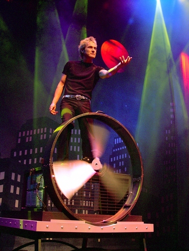 Last time I laughed at his outfit and his “magician” behavior–slowly raised arms, dramatic flair. But it’s part of the show and it makes it fun. His outfit was funny (and we’re not sure how he changed his clothes so quickly. And I had to laugh that he was using the same music “Weird Science” That song from The Lost Boys “Cry Little Sister.” Although I was delighted that he used Muse’s “Butterflies and Hurricanes” in one bit.