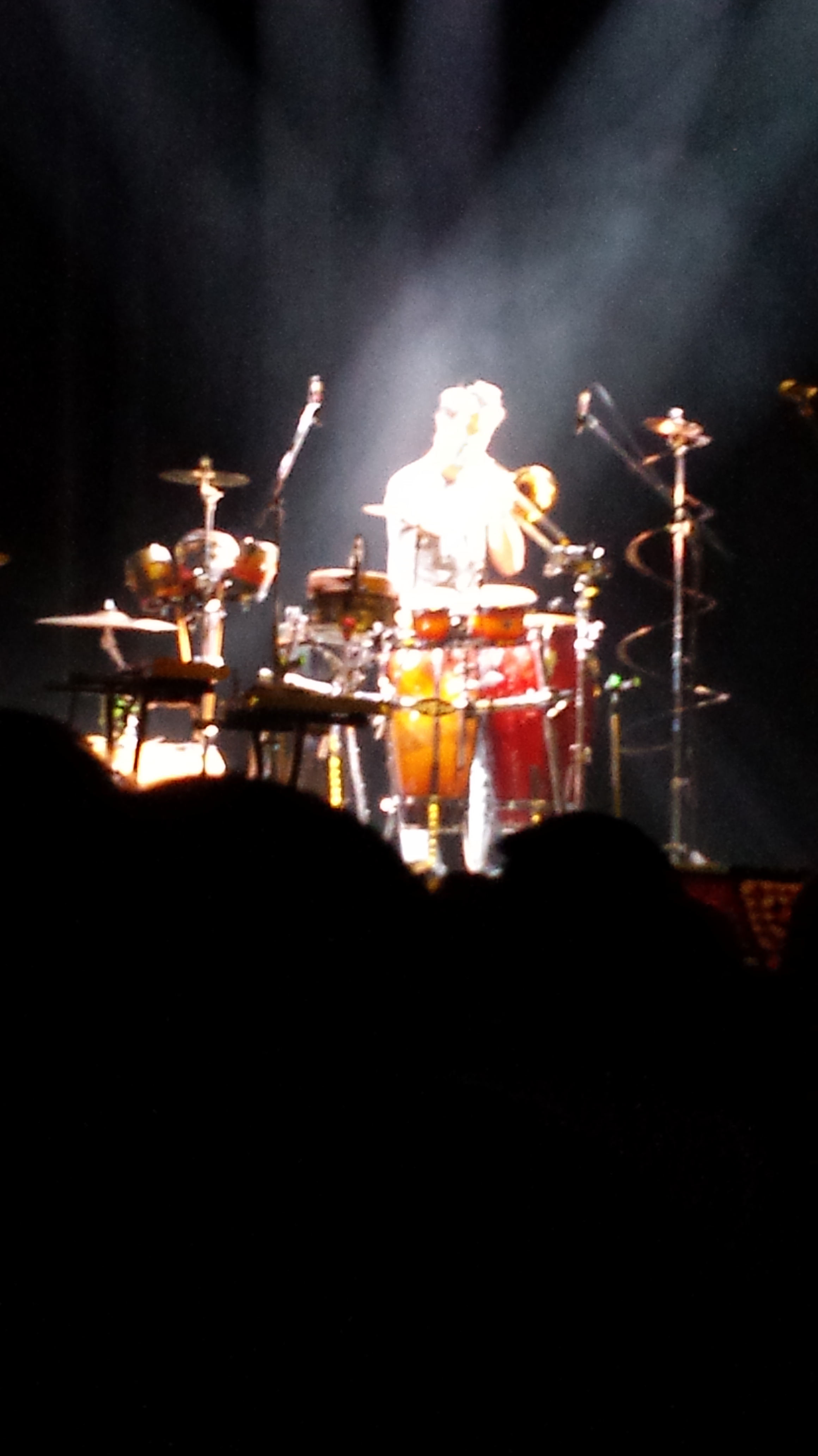They played a few songs which they didn’t last time, the final one “Homecoming King” is one of my favorites of theirs. For “Come Downstairs and Say Hello,” Ryan started the song on ukulele (I took a shockingly blurry photo of this) before the band kicked in and rocked away. This song has some of the best drumming to watch. Brian Rosenworcel mostly plays bongoes–he doesn’t use sticks. And there’s a great instrumental break where the band really lets him shine–he pounds the heck out of them (including the cymbals). It’s pretty awesome, and I finally got a decent video of it. Part 1 and Part 2.