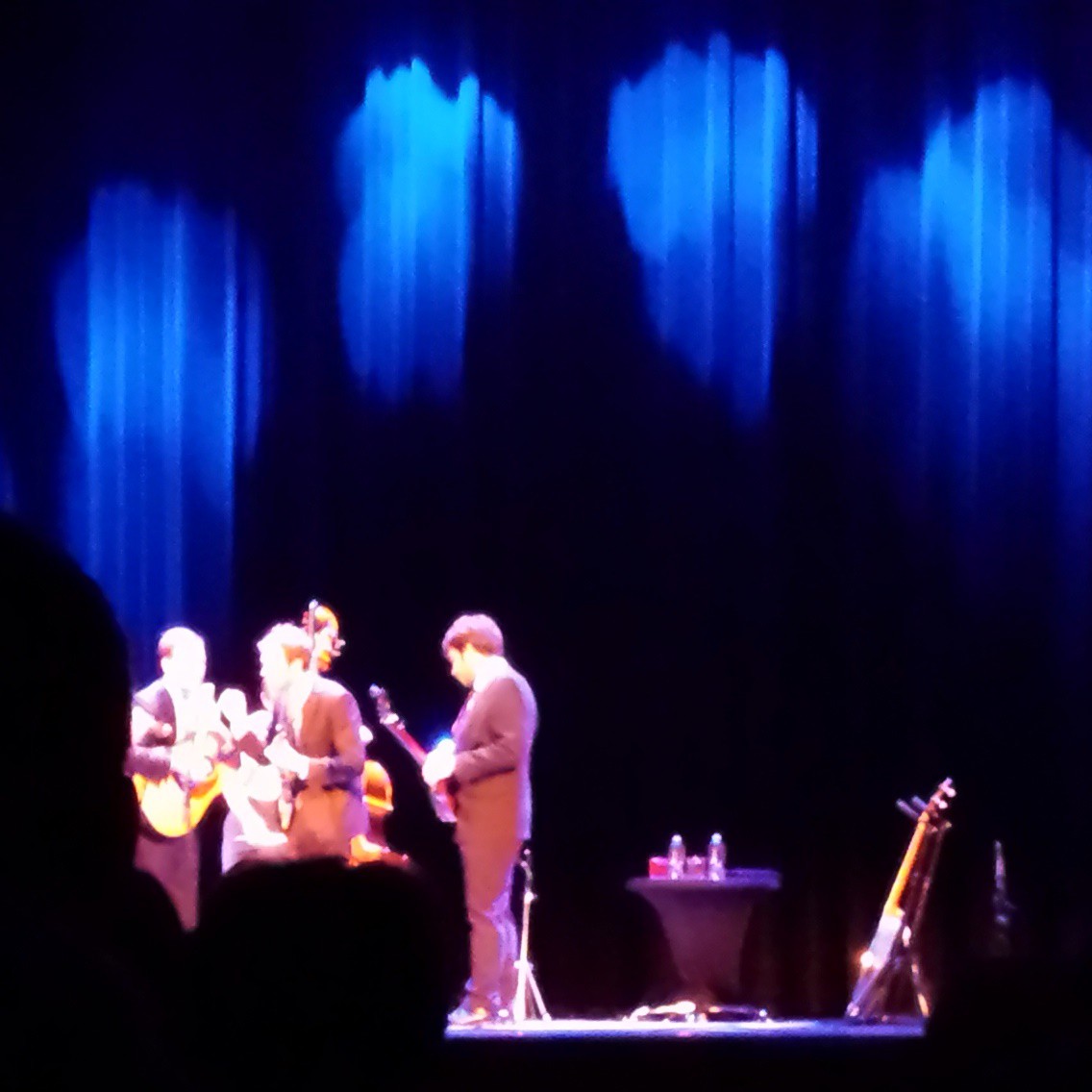 They came back for an encore. Thiel explained that on the new EP “Clementine” (an Elliot Smith song) was done on one microphone while the other songs were done with multiple microphones. So to simulated the experience of going from multiple to one, they were going to go from the one mic to none. And they played in front of the microphone and sang directly to us un-amplified. They sounded amazing. Thile raved more than once about the sound of the Theatre (which they had never played at before) and I sure hope someone from State Theatre heard that and can use him for an endorsement.