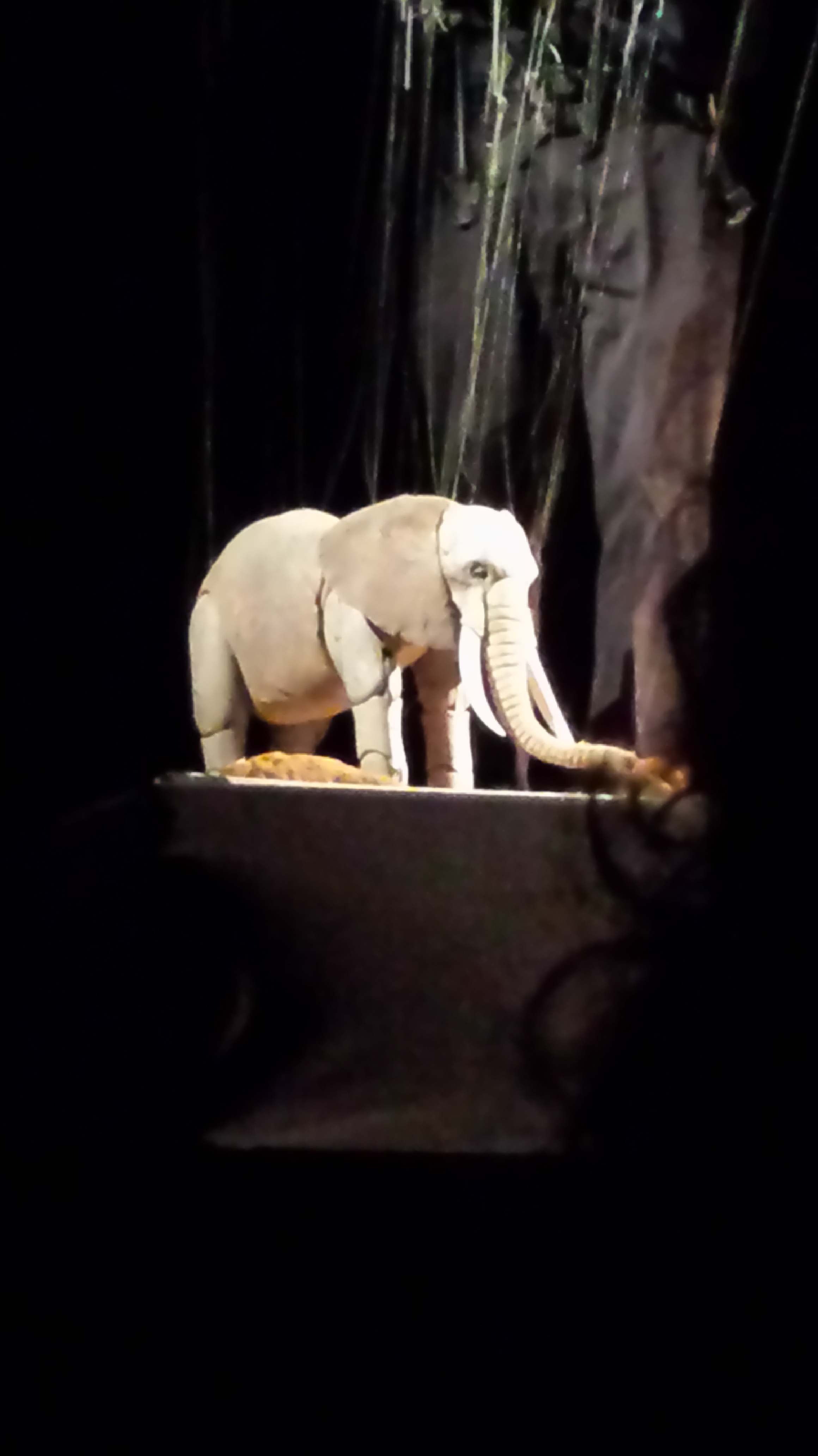 The puppets are puppet-sized and Cashore stands behind them–he doesn’t try to hide himself. And he doesn’t need to. The puppets are so life-like (jointed in countless places) that you are totally sucked into their story. Except for the few times when you have to watch his hands and wonder how that all works. What kinds of things is he doing with those handmade (and decidedly NOT T-shaped crossbar) handles–some of which (like the elephant) have 42 strings on them!