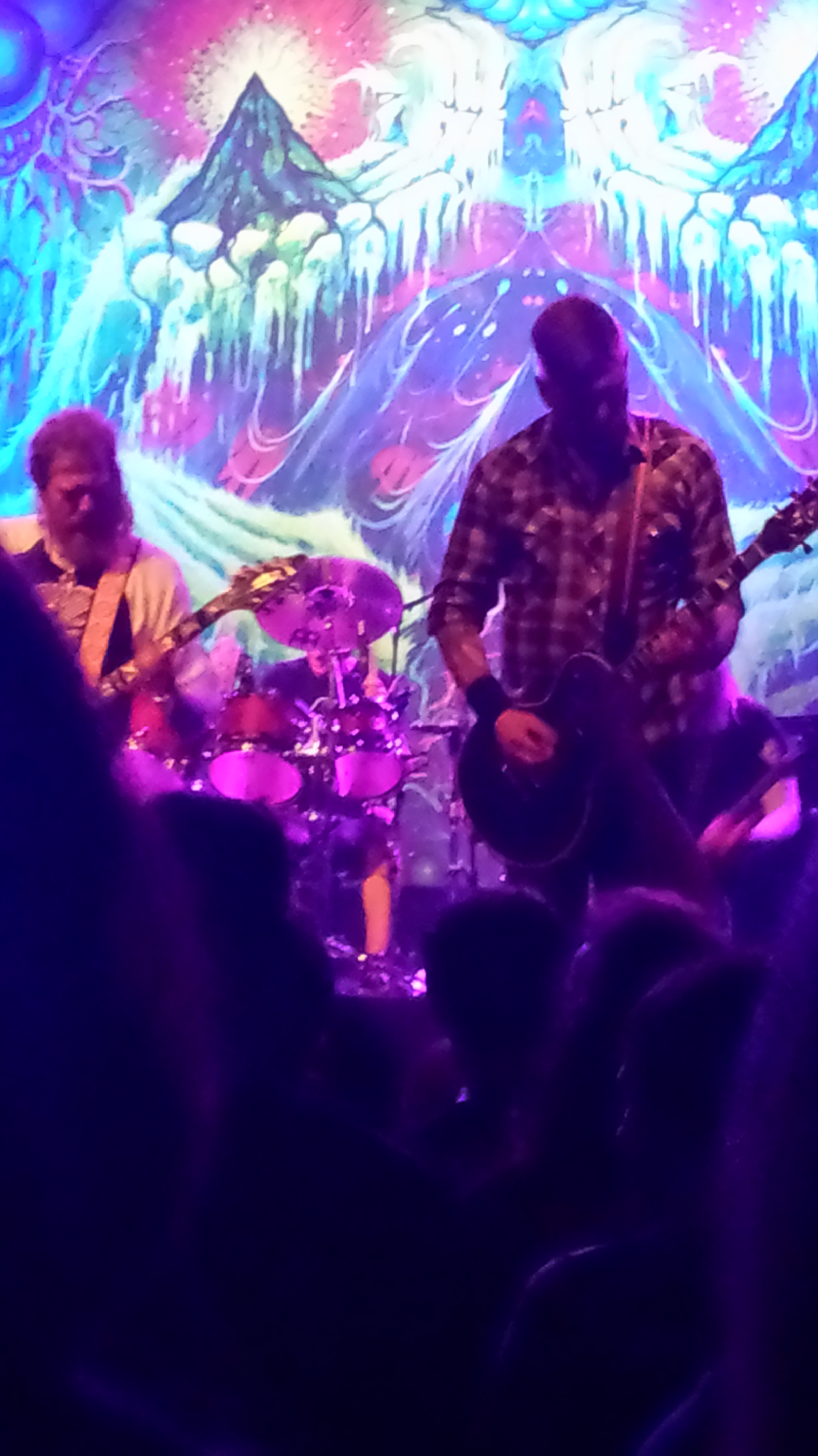 The band didn’t have a lot going on in terms of stage show, which was fine. But their backdrop was very cool. It is the album cover, but if you look at the pictures above, you’ll see that the backdrop changed design depending on which lights were on it. Each color light brought out different items in the painting. Which is pretty cool.