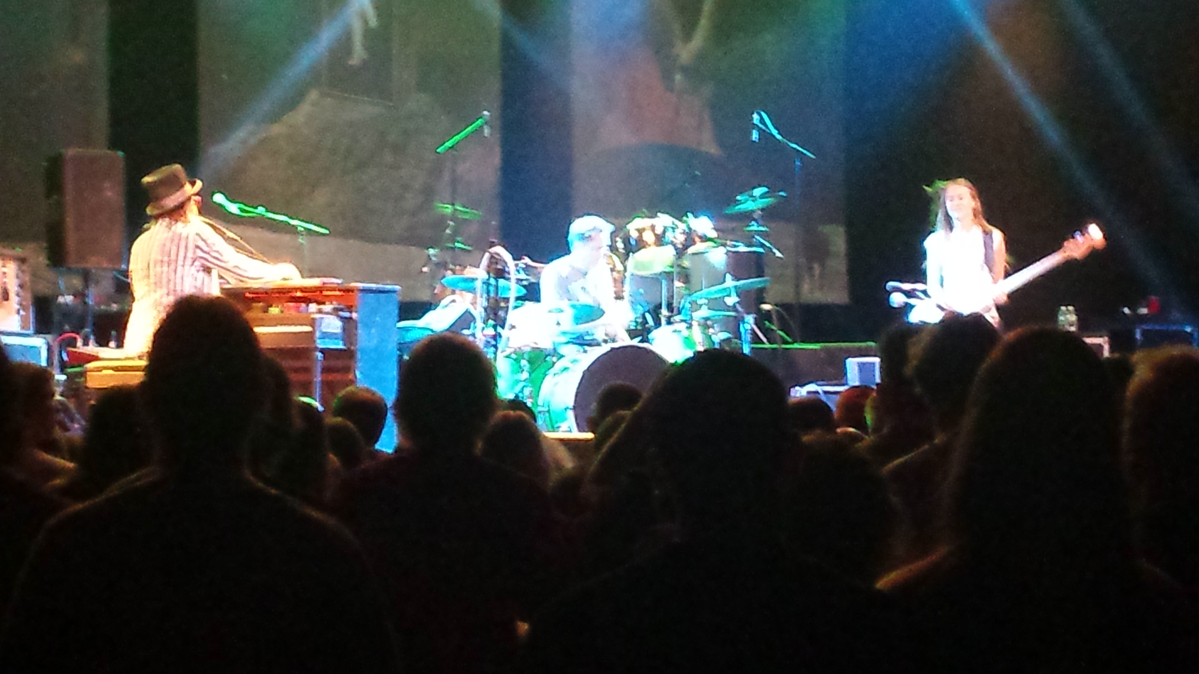 Rykman was the only one out on the front of the stage (Borger behind the drums, Benevento behind the piano) and she really drew everyone’s attention. She wore the same striped pants as Benevento (her white stripes appeared to be colored in with highlighters) and, quite noticeably, she smiled the whole time.