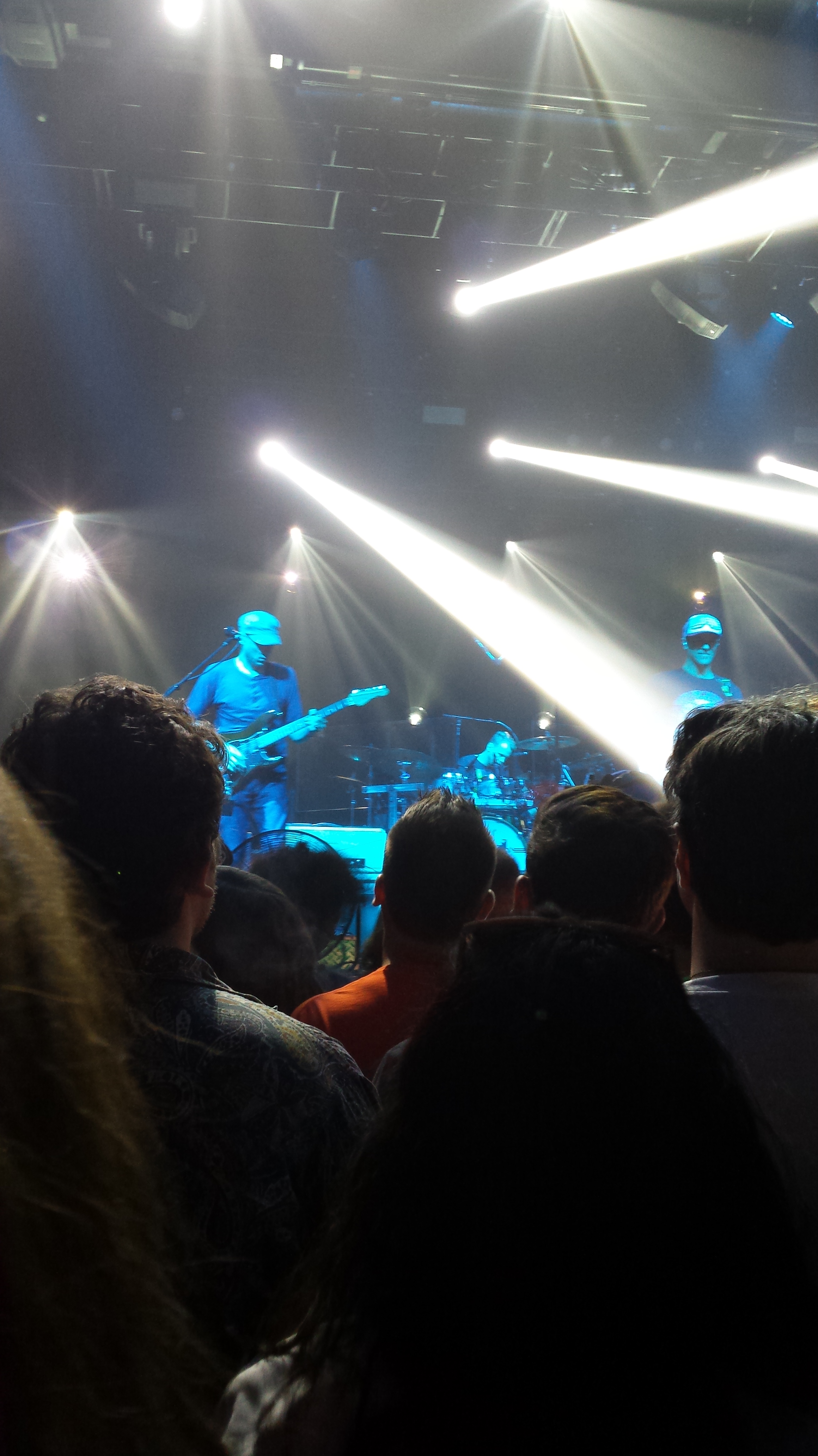 As I walked into the main floor, there was nowhere to go–just tall people everywhere. So I walked upstairs–never been up there before. Parts of the upstairs are for VIP only, so there’s a small area where you can stand. I chose the left side for a bit and it was fine. I was impressed by the musicianship (and the guy slowly “dancing” next to me.” And I really liked the rocking guitar sound. I loved that in “Utopian Fir” the guitarist used a pause in the song to get the whole band to launch into the intro to Nirvana’s “In Bloom.” It sounded perfect… and the then they deftly returned to their own song before singing any lyrics.