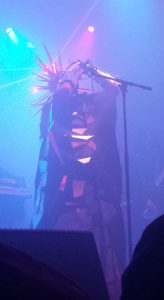 About 2/3 of the way through the show, Attila walked back to the keyboard behind him and crouched down for a pretty long time. When he finally stood back up, he was wearing a really creepy mask (left). Like, really creepy. I’ve seen people describe it as a dead skin mask, and that ‘s pretty accurate. He sang with that on for a time and then he left the stage.
