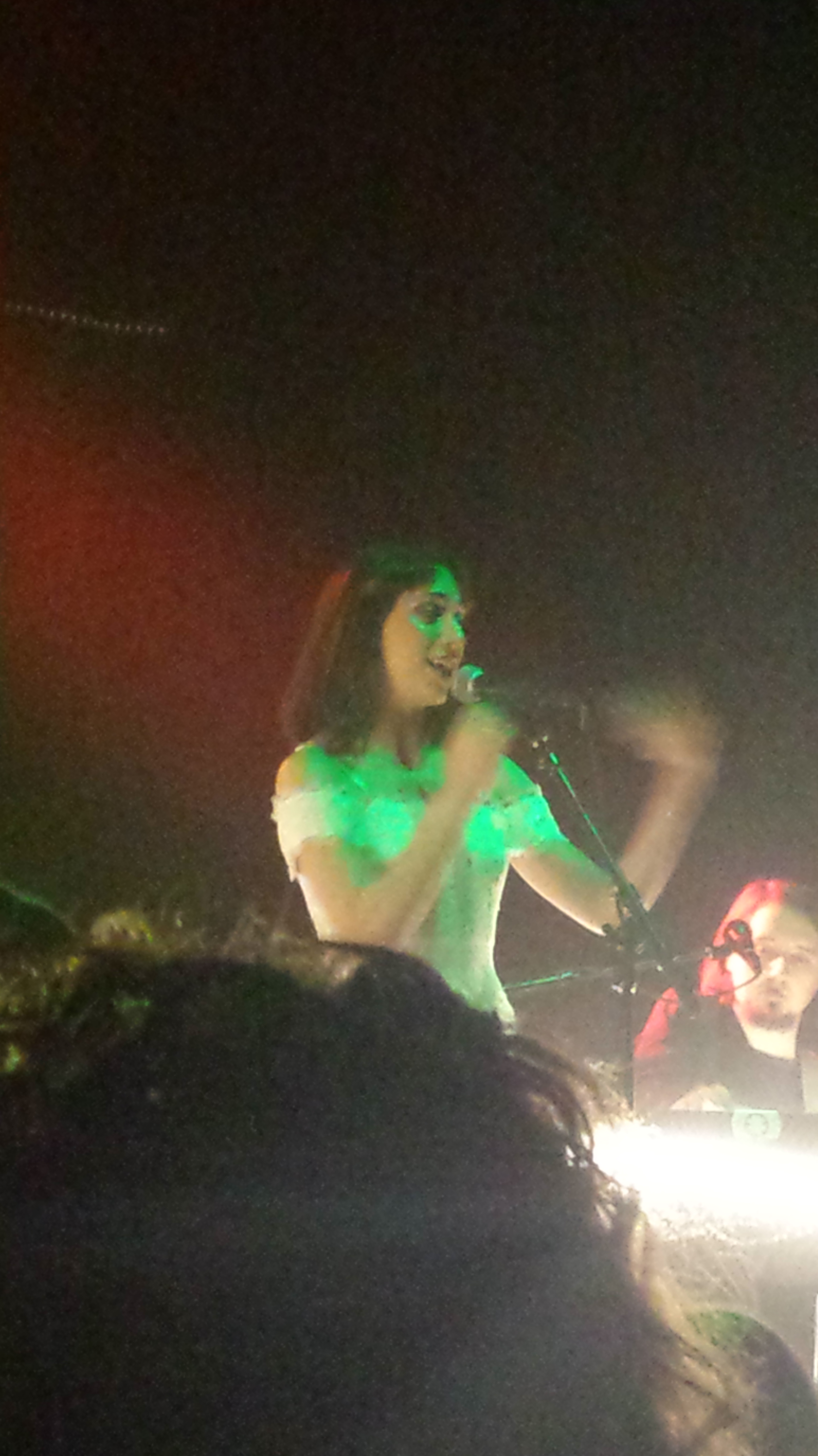 Cohen had on a black vest over her white dress and France was now wearing a suit jacket and dress shirt (well, he was still putting it on anyhow). They finished the song and then continued with the rest of the album. For “On Lankershim,” France grabbed and strummed an acoustic guitar–no idea if it was audible at all.