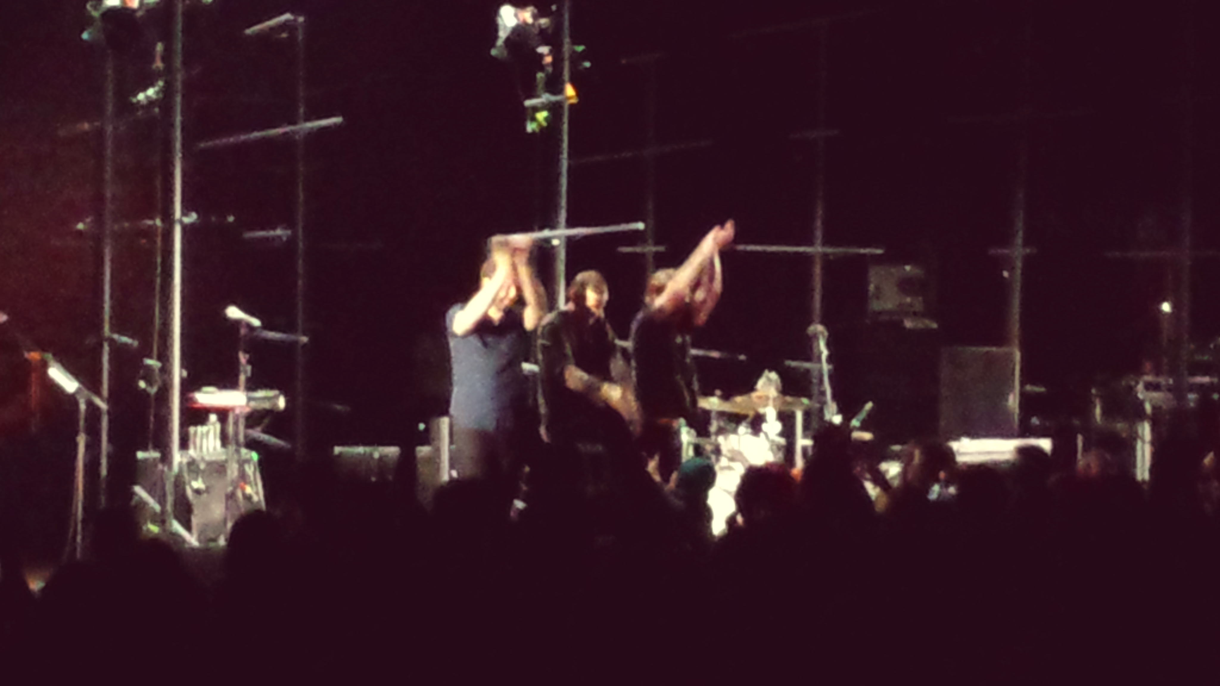 After a few moments of silence, the crowd went nuts and soon the guys came back on stage. Orri kicked one of his cymabls off the stand and the three of them stood in front of a big screen with Takk scrawled on it (Icelandic for Thank you) and we smothered them with applause.