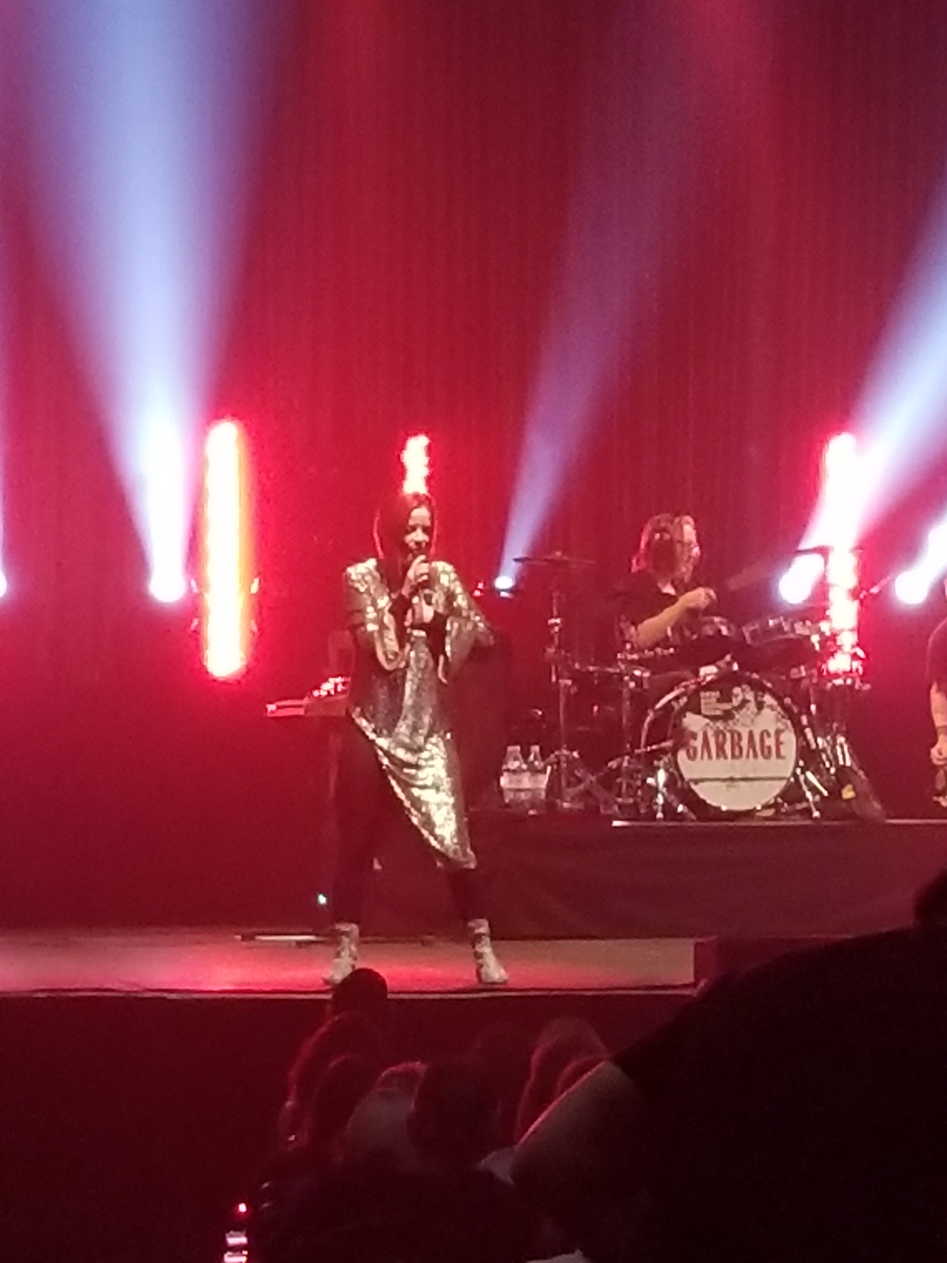 Sometime around here came the other massive disruption. In front of us was an older guy who was on his phone for most of the show. It’s rude enough to be on your phone, but at least turn down the brightness. WHY DON’T PEOPLE KNOW THAT YOU CAN TURN DOWN THE BRIGHTNESS OF YOUR SCREEN? Earlier the people next to him were really drunk and were talking through most of Garbage. They were in front of me, so I could only hear mumbles, but the people in front of them were pissed. Then they left. A couple songs later, I heard a guy next to the guy in white shout FUCK YOU! right in that guy’s’ face. The guy in white shouted FUCK YOU back. And a teenaged or mid 20s girl in our row seemed to get into it too. (The girl was with her family and a couple of little kids, and that must have been a pretty traumatic moment for them.). Finally the bouncer came over and took the guy in white away. The girl ran after them saying she wanted to add something.