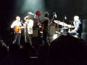 After a few songs, Bird said, “We’re going to move over to the old timey microphone now.” They played a few songs “unamplified” and he felt that the Mann Center would be a perfect setting for it. And it was. The musicians gathered around the old-fashioned microphone with acoustic guitars and Bird’s violin. It brought a new and different energy to the show. Aside from “Capsized,” this was my favorite part. And I was especially pleased that the microphone was on our side of the stage. They played “Give It Away.” I’m pretty sure they played “Are You Serious.”