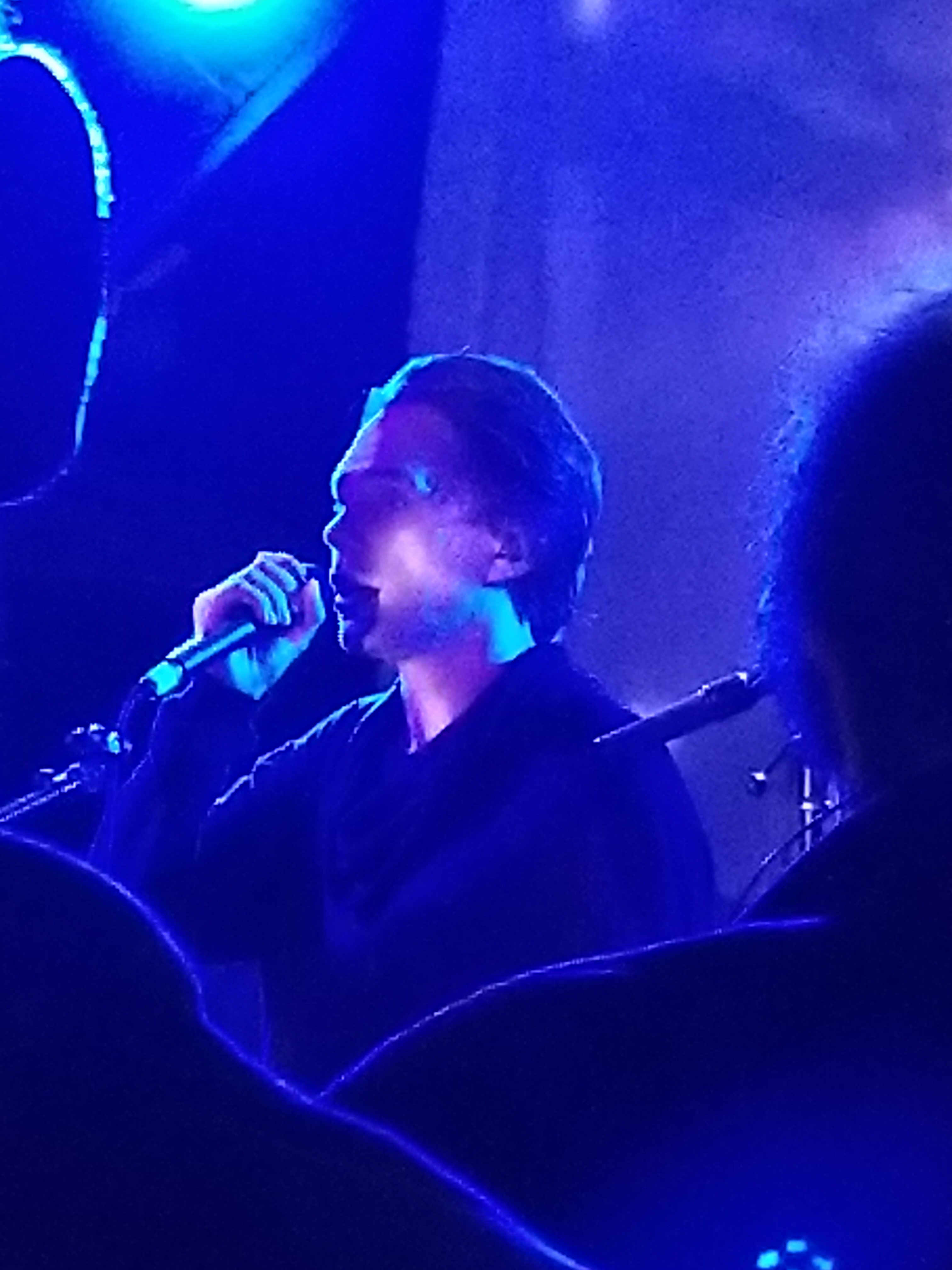 Drummer Silas Utke Graae Jørgensen played a great complex assortment of sounds (although he was in the dark most of the time). There were two touring members with them: Nick Watts on keyboards (who has been touring with them since 2001) was way in the back and I could barely see him. On guitar was Mads Wegner. He sang back up, but mostly he played the complicated and beautiful melodies. I have a few pictures of the interesting chords he was playing, but he was way on the other side to me.