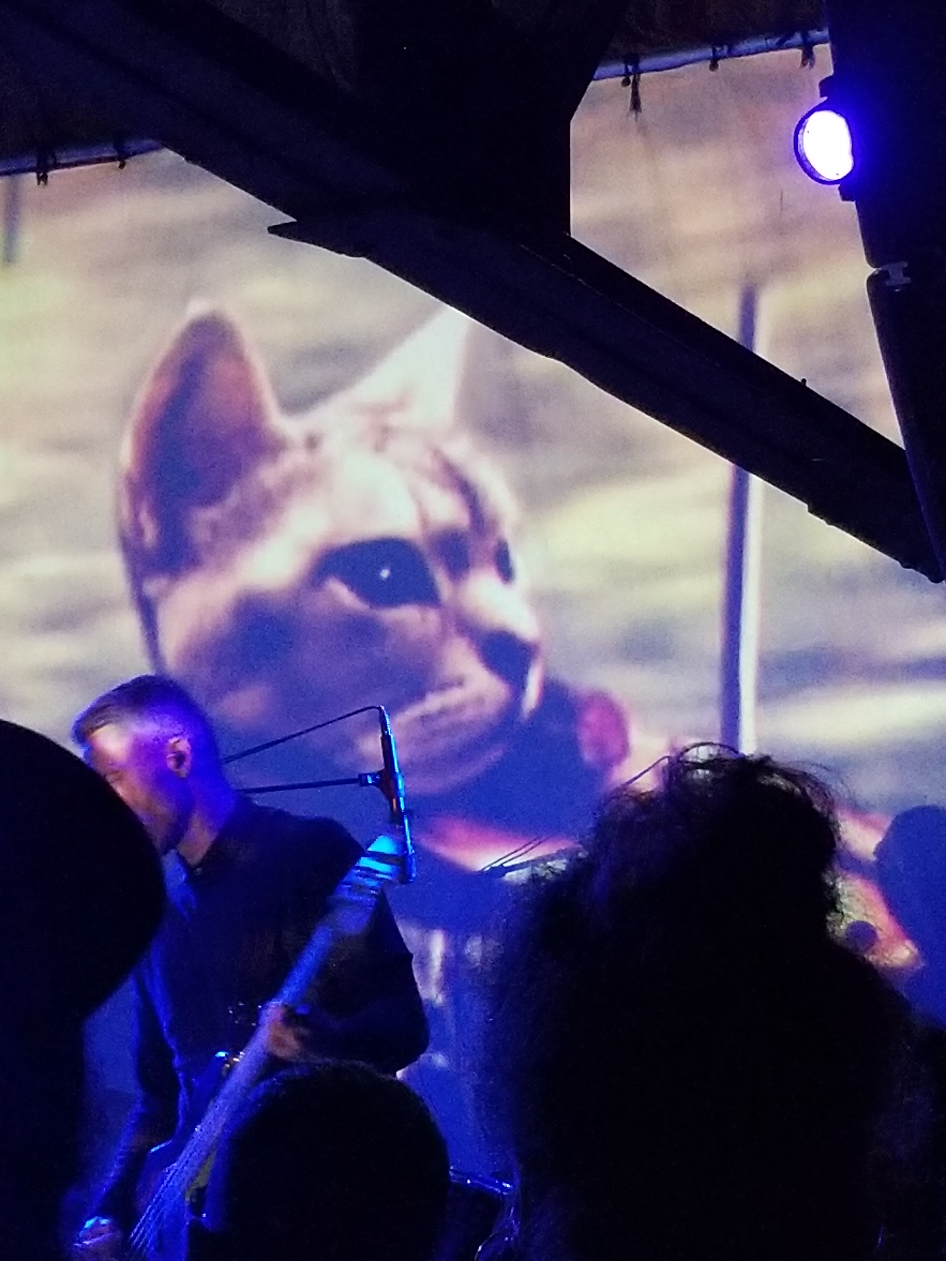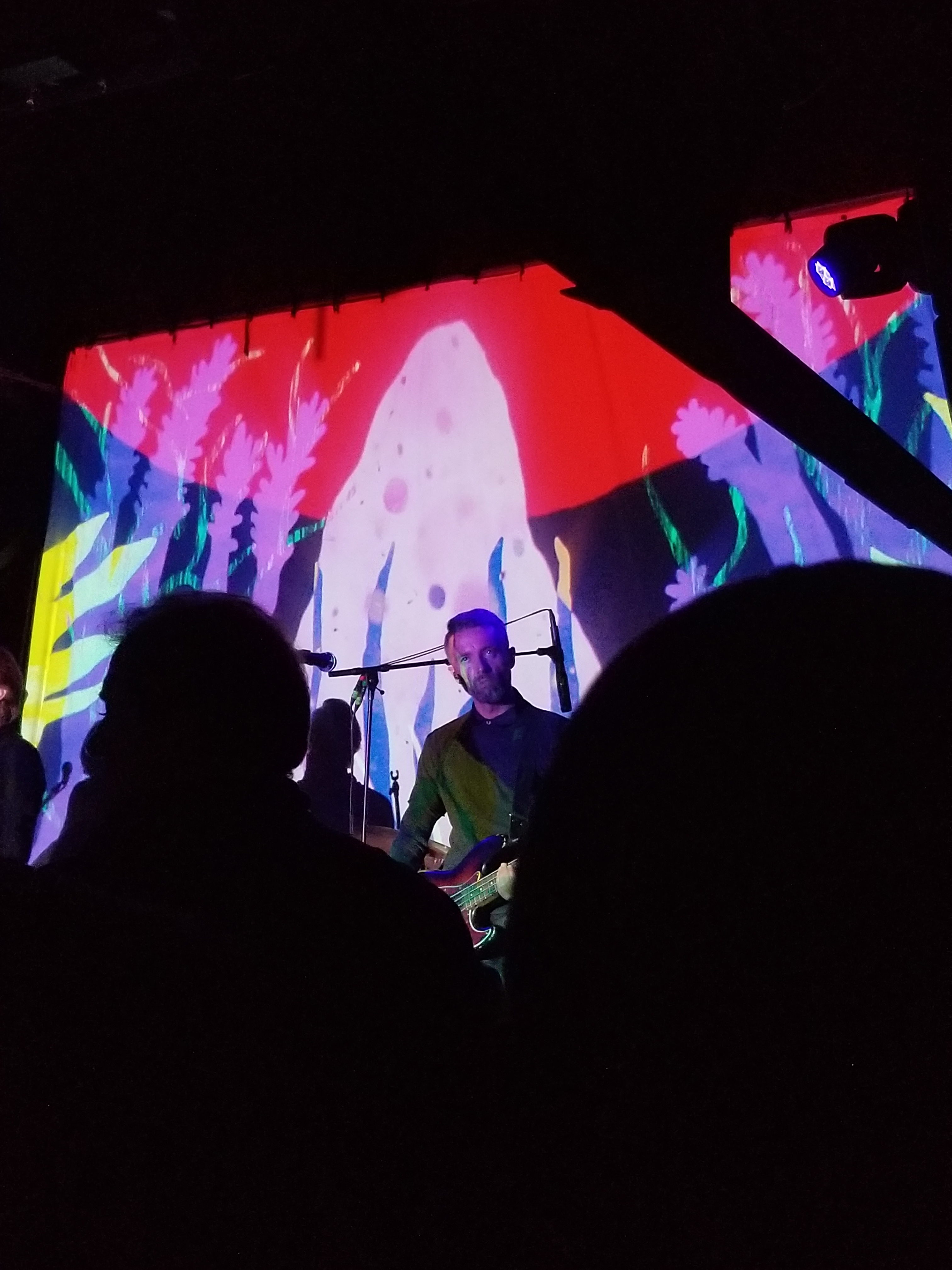 All through the night there had been weird and delightful videos playing on the screen behind them. Some were creepy, most were cool and some were just kinda weird. Well, for “Comforting Sounds,” the video showed puppets playing violins. I couldn’t resist taking stills behind Wohlert and then I just gave up and took a video of it.