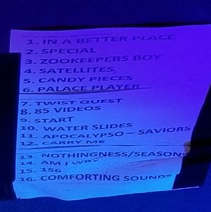 I don’t know if they stayed to sign things (I assumed they would but who knows). But as I was leaving I saw the setlist on the stage and snapped a photo: