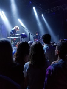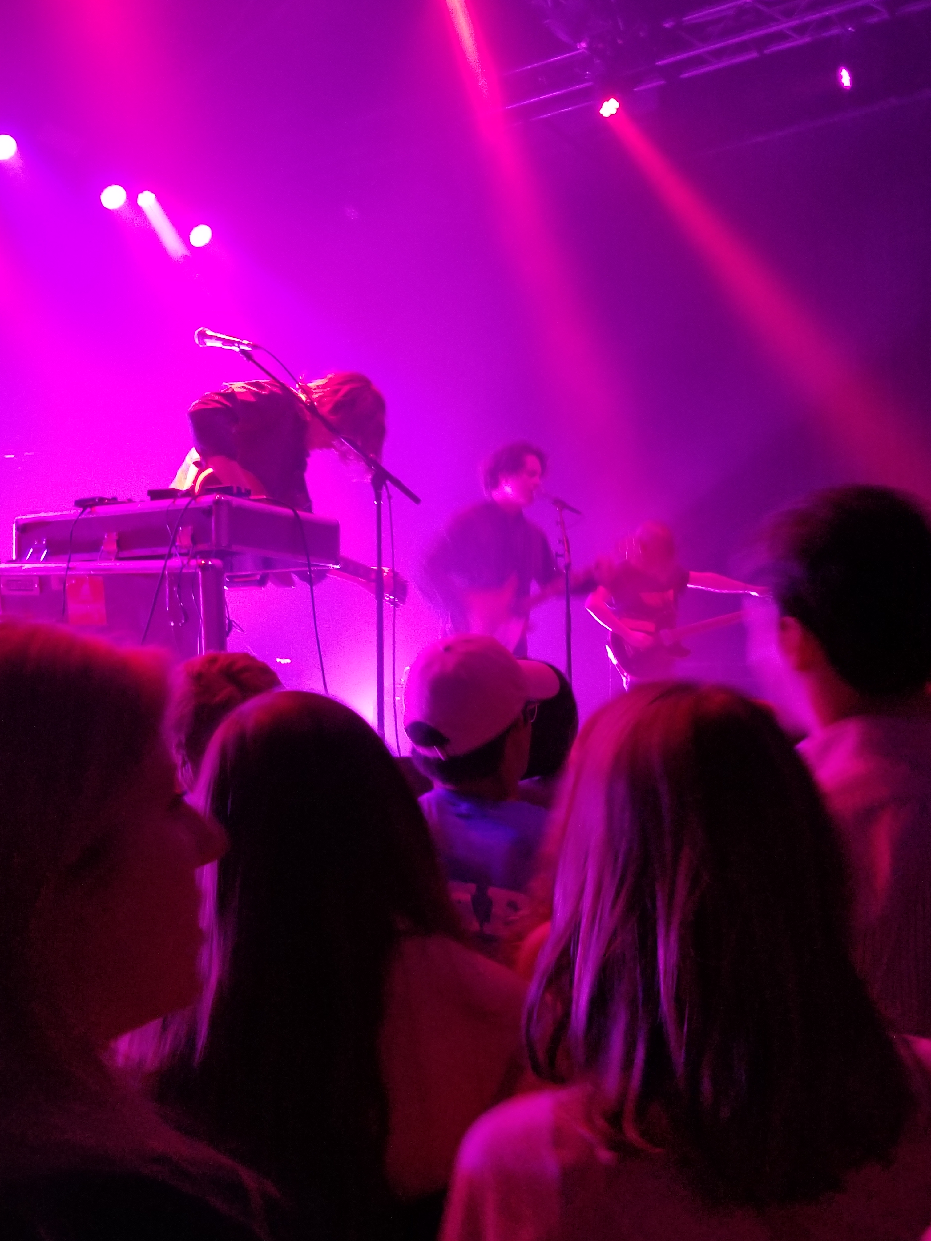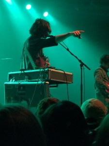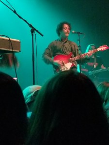 I was in front of guitarist Pat Cassidy and his box of effects. It was fun to watch him and drummer Braden Lawrence ( I couldn’t really see bassist Connor Jacobus because the lights were pretty dark for much of the show). But really, all eyes were on singer Rob Grote. Both when he was singing and when he wasn’t–because nearly every time he stopped singing he hurled himself around the stage (while still playing guitar). He lurched and danced and was just all over the place–so much energy!