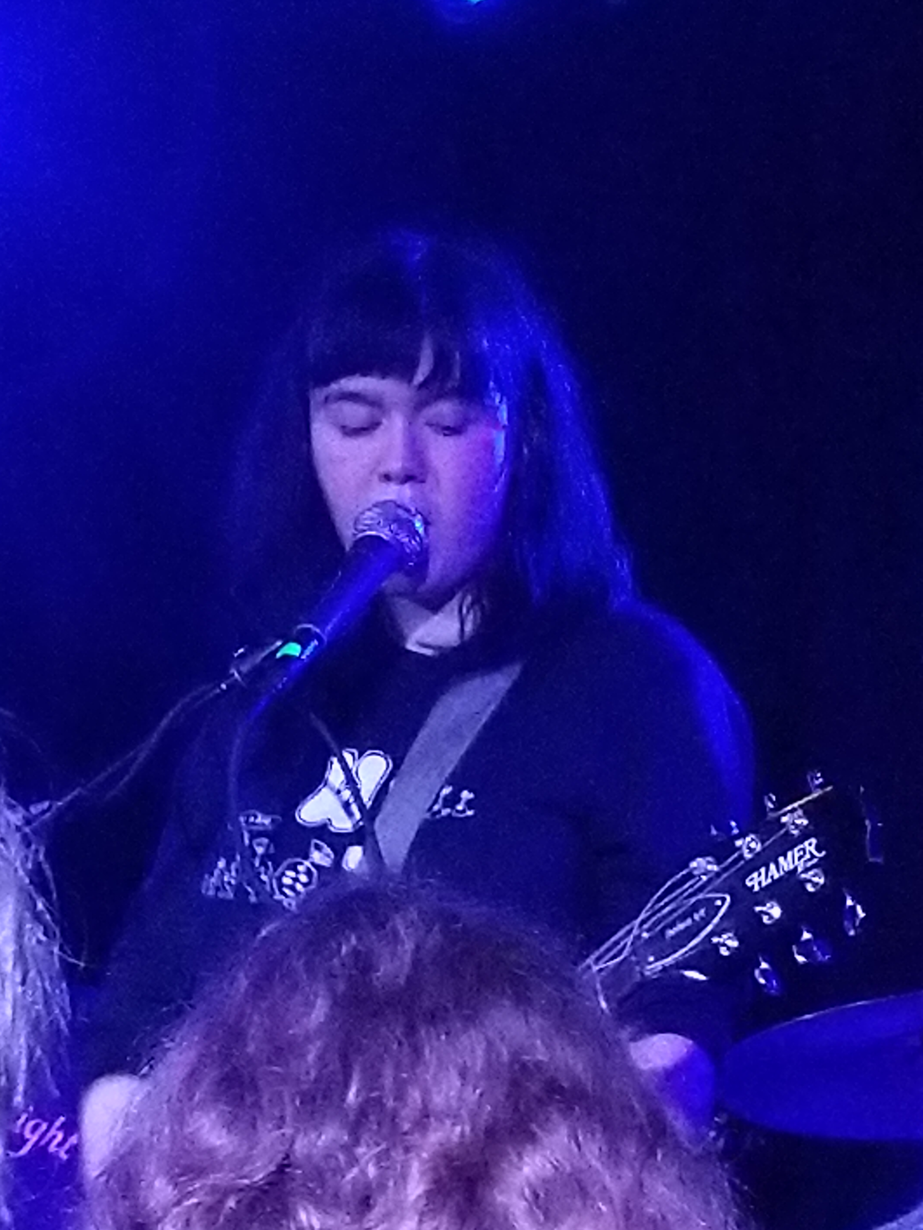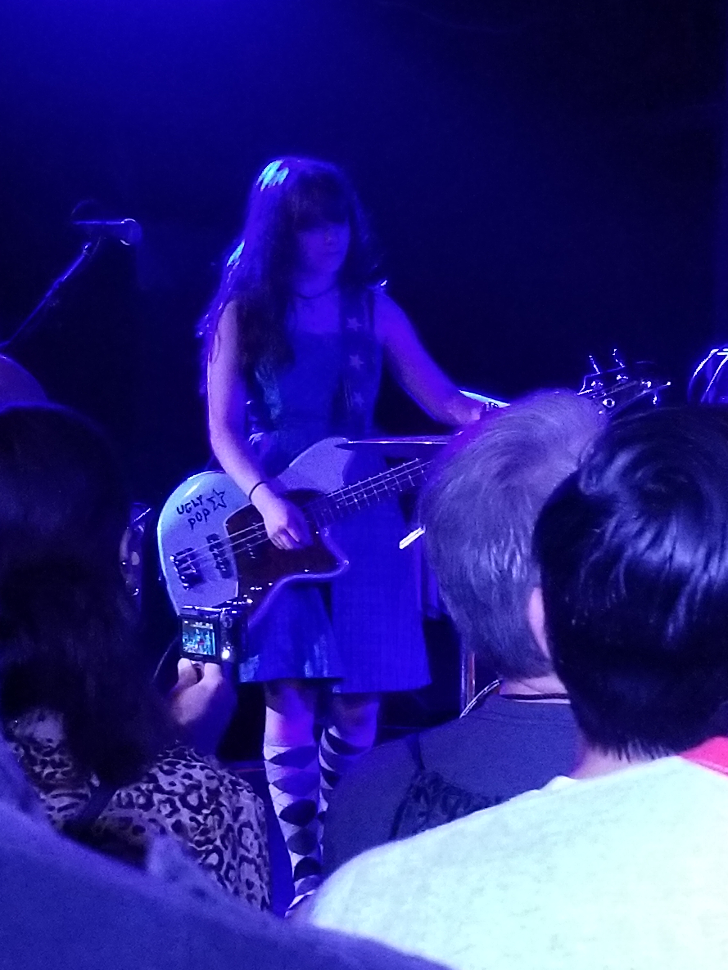 Kelli was energetic and fun, pogoing while she played bass. I also love that she was wearing a cute dress with knee-high socks while screaming her head off. Peyton was a bit more subdued in her behavior, but not in her singing or playing.