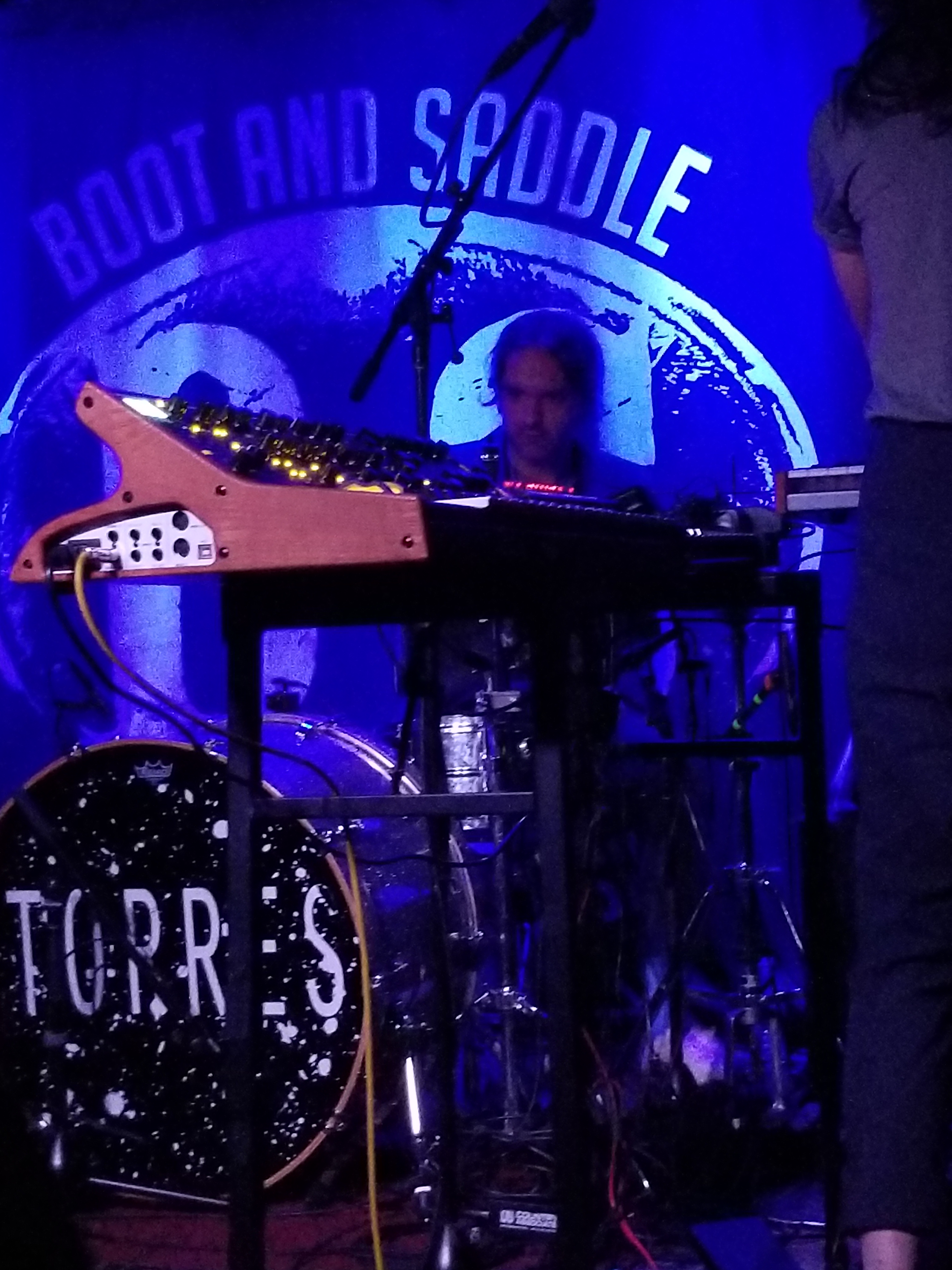 As with last time, guitarist Cameron Kapoor stood in the back playing all kinds of great noises. I couldn’t see him as much, but when ever I did I saw him noodling around on the fretboard or with the keys.