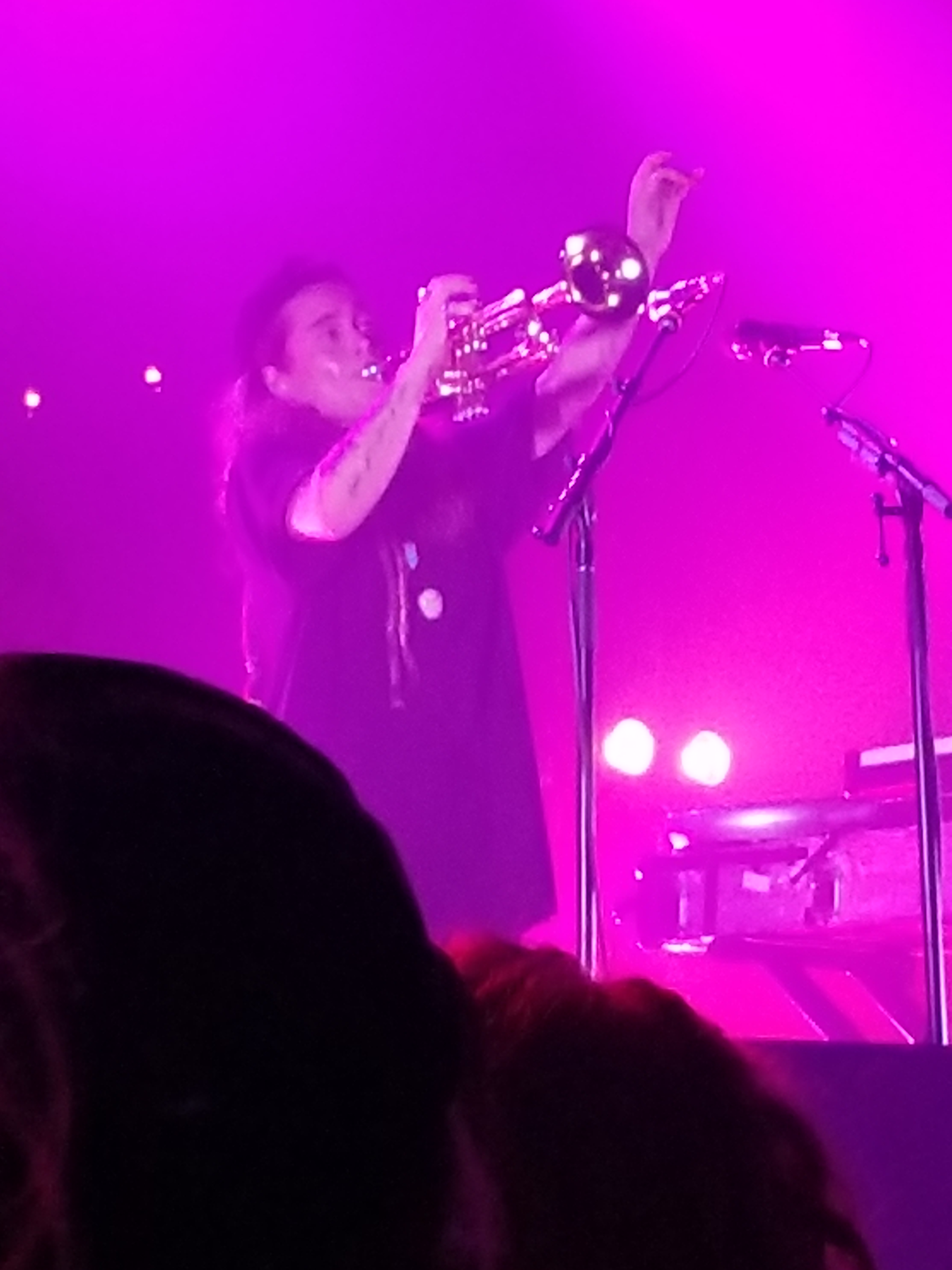 But if we thought she had shown off all of her tricks, we were all soon to be amazed. Because not only does she play guitar and keyboards (and use the kick drum as well, of course), she also plays trumpet. On a couple of songs, she laid down some pretty trumpet melodies.