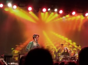 I had also noticed that they had a projector set up for behind the band. I wasn’t sure if there were going to be interesting graphics behind them. But instead, they mostly played around with lightning and repeated effects. Sometimes there were visual echoes of the band projected on screen. Sometimes there were just some trippy-looking effects back there.
