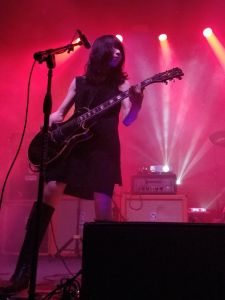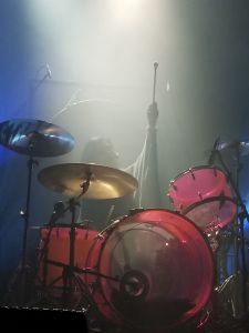 Yes, quieter. There were moments when Boris brought the volume down (it was appreciated). Wata sang lead vocals on “Beyond,” which begins very quietly with just cymbals and strummed guitar. Many of us even took out our earplugs for this–until they exploded mid-song once again. And later, during what I think was the intro to “Dystopia-Vanishing Point” Atsuo had some variant of hand cymbals and clanged then together–seemingly waving the fog away while Wata played the e-bow. This song–11 minutes on record–ends with a five-minute solo from Wata and she nailed it.
