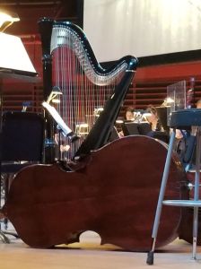 When the show was over, the conductor singled out every instrument for recognition (by miming their fingers) and when he got to the double bass, the guy on the end lifted his high in the air (no mean feat).