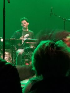 Their drummer Joao Gonzalez came out first (“ladies, he’s available and he likes the Eagles,” was one of several Philly references). Then Hana came out and checked her guitar as JJ came out and checked her synth box thingy. They gave each other a very long deep hug and then Joao begin playing some synth sounds on the sampler. I was glad to see that they still had the same drummer as on their Tiny Desk Concert.