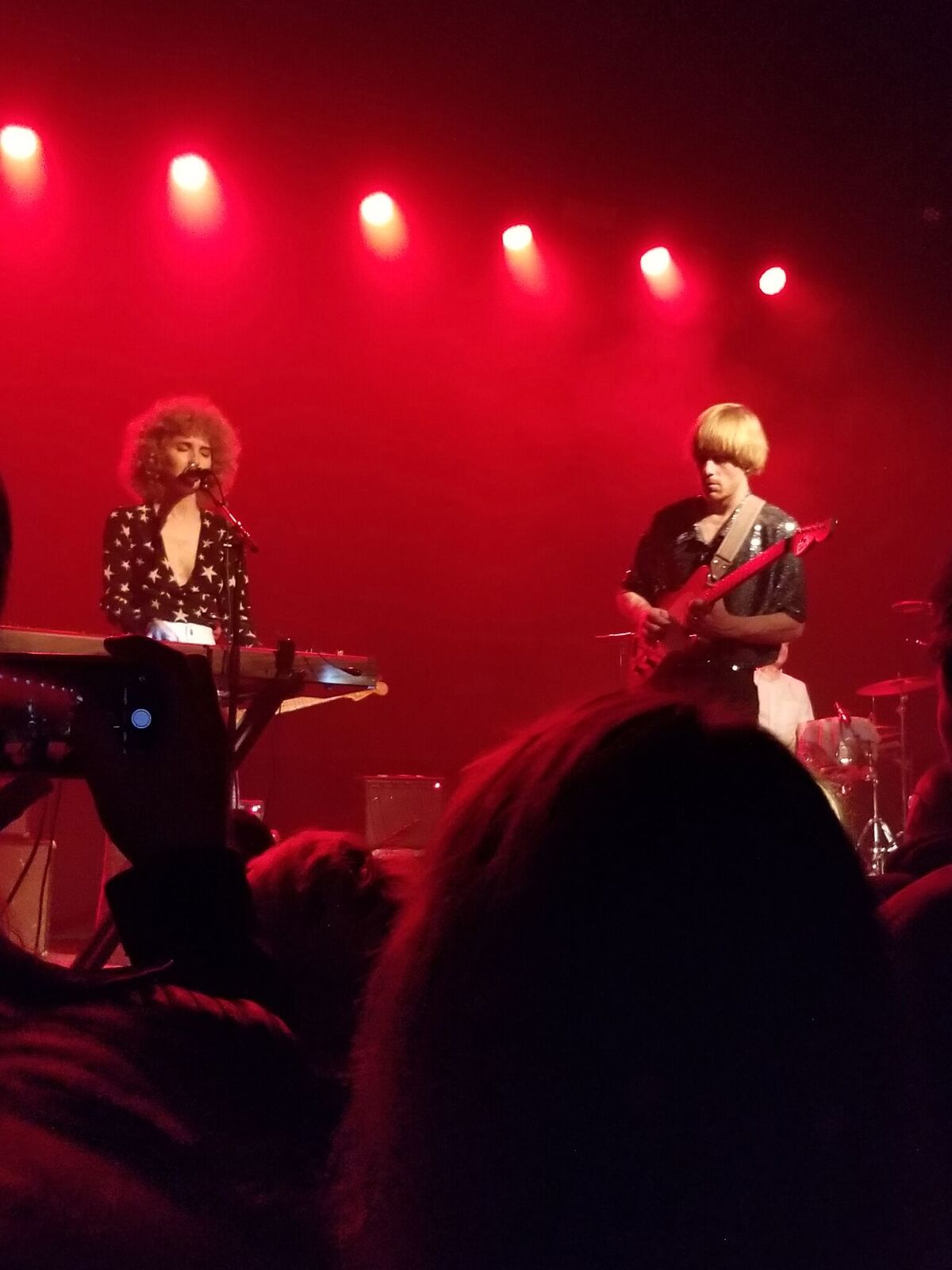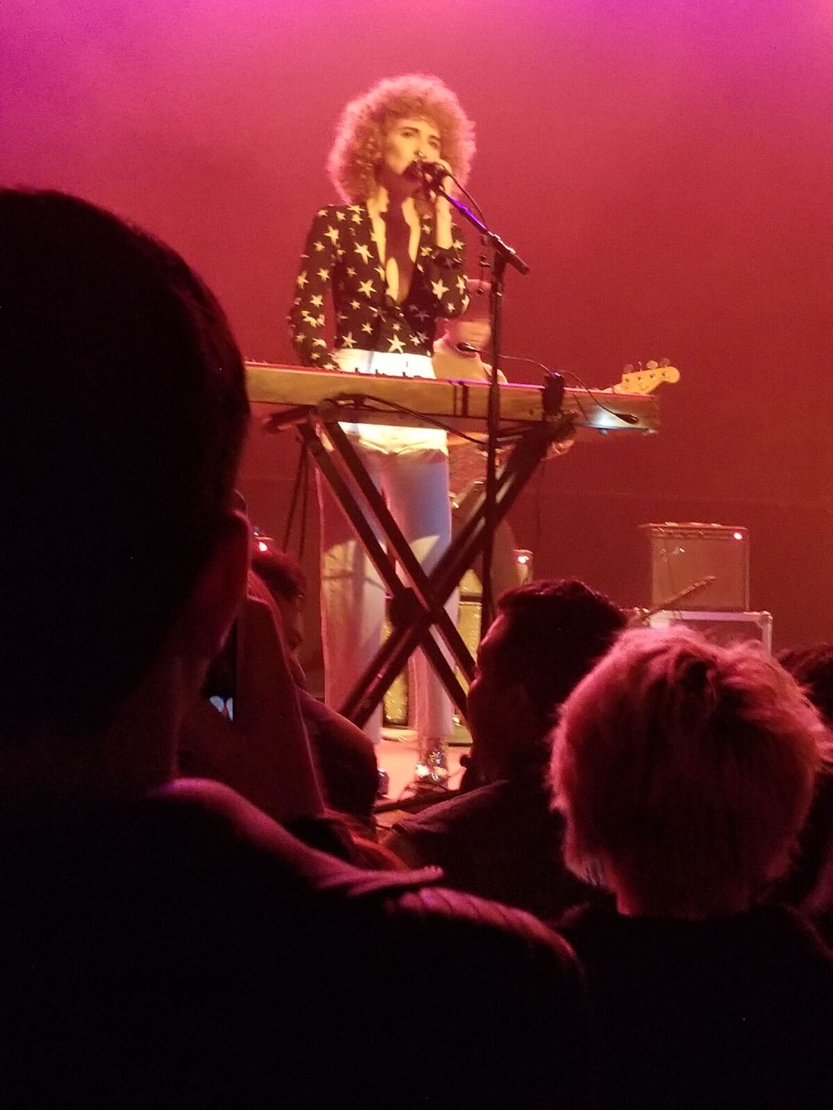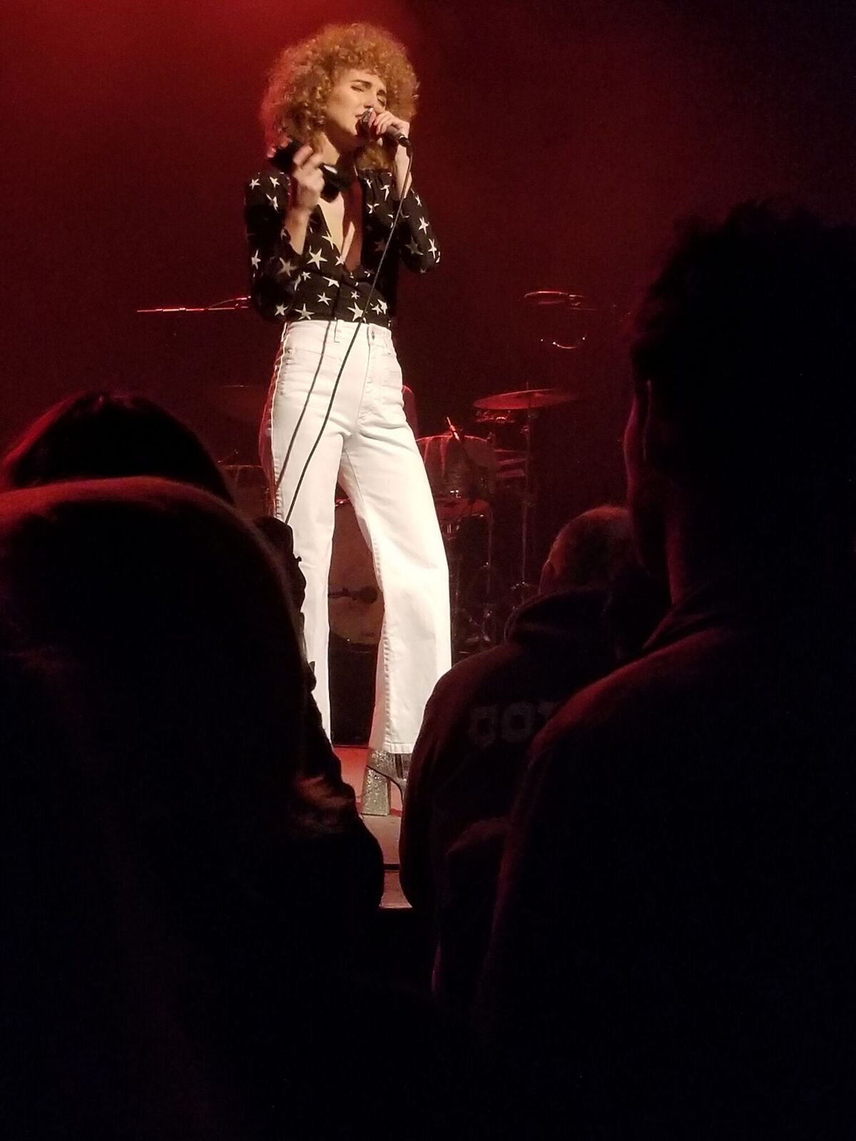 Before one of the later songs, Moore said she was glad that there was a balcony there because every review talks about her outfit, but no one ever mentions her keyboard–it’s like an accessory or something. But, she informed us there was a complicated part that she was totally going to shred on and she wanted witness. And indeed, it was a cool part and yes, she did play it. Actually it was quite clear that she a playing all night (and keeping time with her swaying platform glitter shoes (see right)–its hard not to talk about her outfit when it’s that cool). And the keyboard was always the dominant instrument.