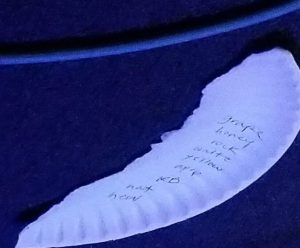 I took a picture of the setlist (on a third of a paper plate), but I don’t know what the all of the song titles are supposed to be).