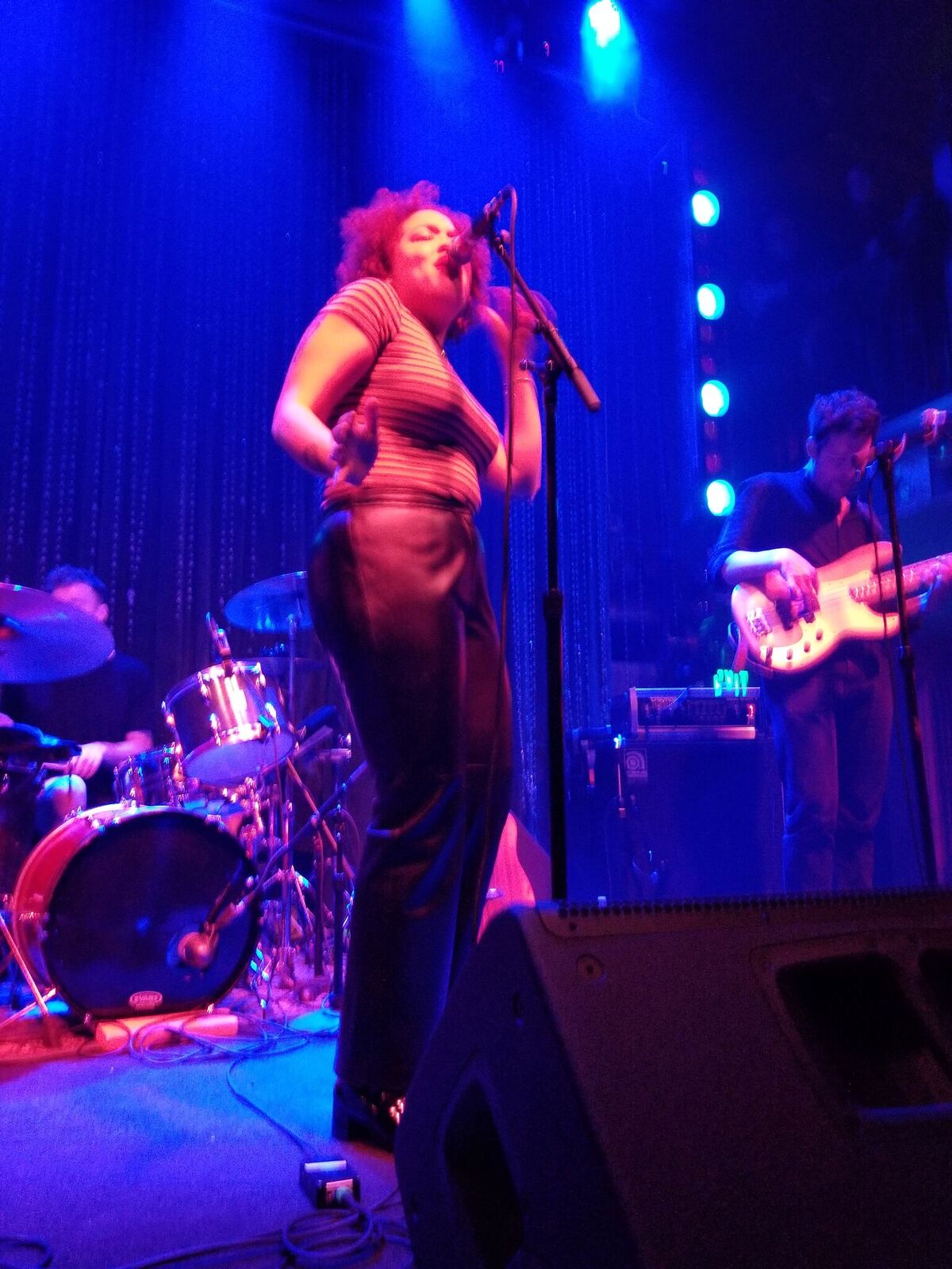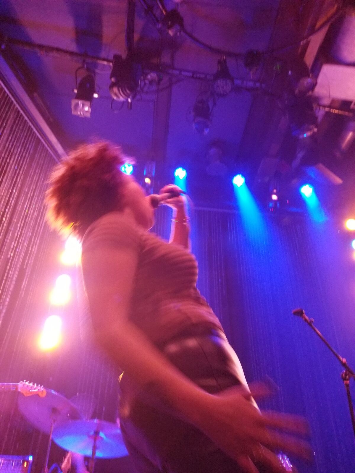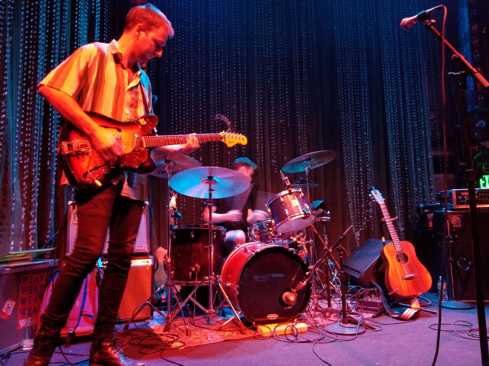 Bassist Zach Bines had a flower on each of his tuning pegs, which was pretty funny. I knew that Waters played some pretty wild guitar, but I had no idea that Bines would match him on bass. I genuinely didn’t know who to watch–Burke’s theatrics, Water’s interesting playing or Bines’ cool bass stuff. Drummer Spencer Cole was pretty great too, with lots of off-kilter timings and beats. He only suffered in the photos by being behind everyone else.