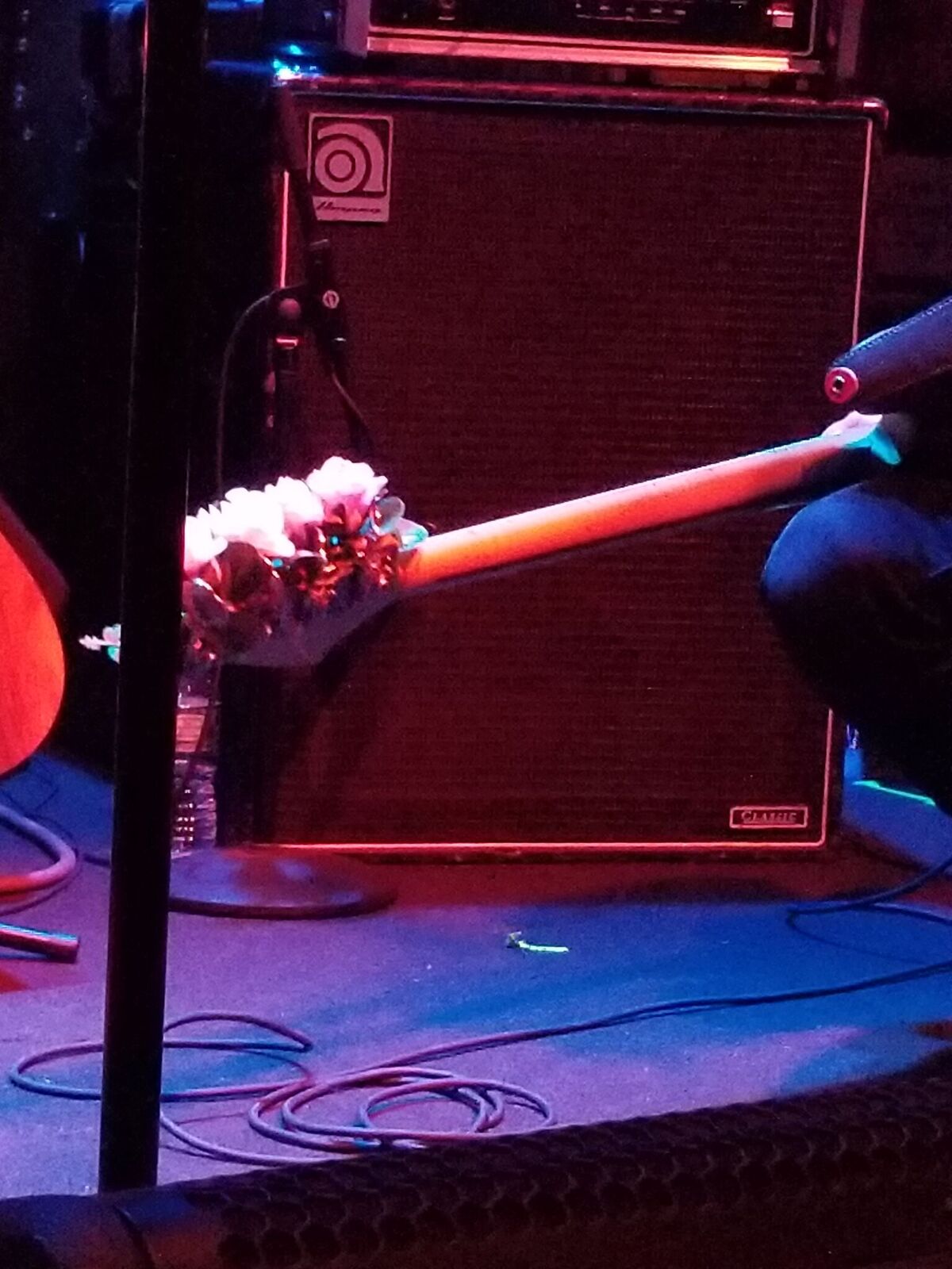 It was around this time that Waters broke a string (not surprising) he had a second guitar for a couple of other songs, but I was impressed at how un-hindered he was when he brought that guitar back and played one or two songs with that broken string swing around.