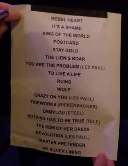 They followed that with the song “Wolf,” a song that sounded familiar but which I apparently didn’t know (it’s was a bonus song from iTunes and is a fan favorite apparently). Then they introduced a song from a sister duo from the 1970s. Sarah and I couldn’t thin of who that was, although if we’d been following their tour we would have known immediately who it was (as the couple next to us did–but we prefer surprises after all). They were speaking of Heart and they played an absolutely rocking and totally spot on cover of “Crazy on You.” I often don’t want bands to play covers–I’m h ere for your songs, after all–but this cover totally ruled. The drums were pretty great on it too.