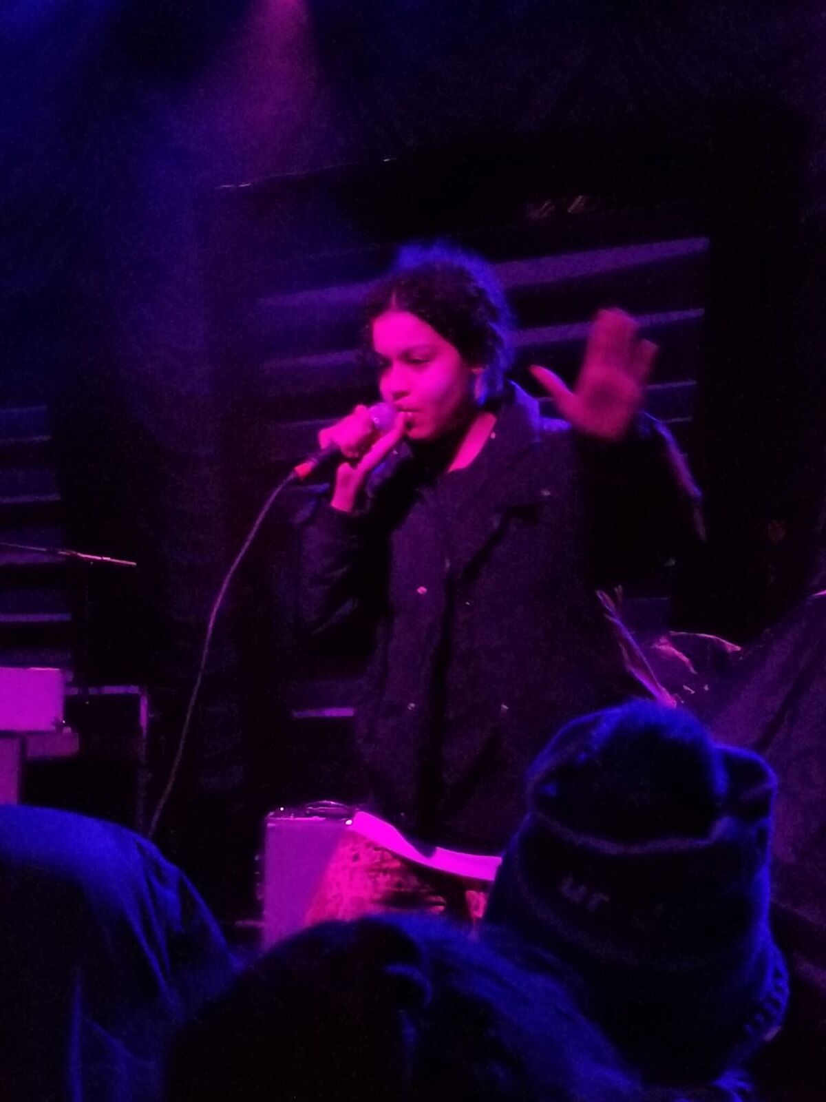 For this show, we were expecting a Nor’easter (which would drop 12-18 inches of snow) to come down that night. The show was billed to start at 8:30, so if there was no opener, we’d be home before the snow even started. I was a little bummed to see Sneaks come out. She also didn’t quite fill the room right. It was perhaps too big for her small set up. She never introduced herself. She thanked us a lot for our applause–and the audience did respond–but it never got off the ground, somehow.