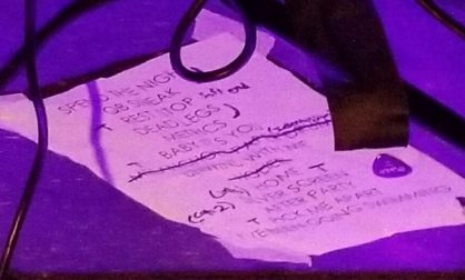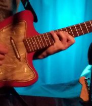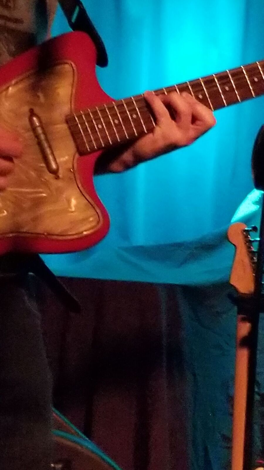 But it was Wolfson who brought a ton of energy to the stage–doing some interesting moves–at one point holding his guitar up by the whammy bar as the final notes echoed out. And playing some fairly interesting chords like this one.