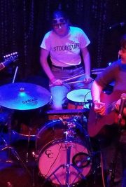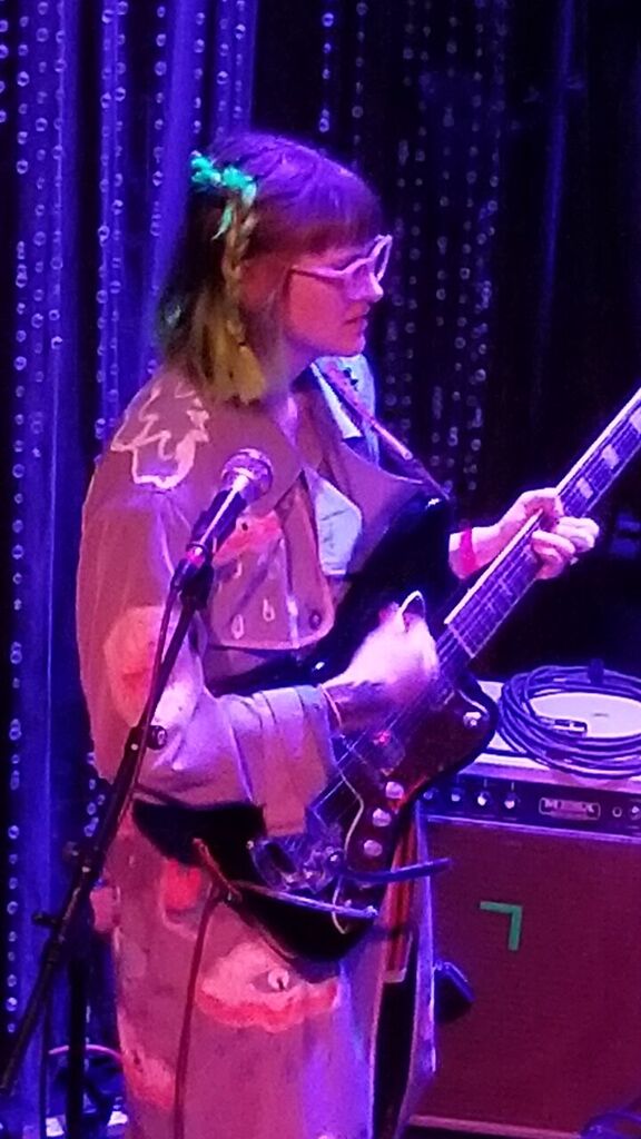But I was really impressed by drummer Liv Battell. For songs that were not overly complicated, Battell didn’t play a simple bass/tom, 4/4 pattern. Her kit wasn’t large at all, but she made great use of especially the floor tom, always keeping things interesting (especially from the balcony where I could see what was going on (and wondered all night what her shirt meant)).