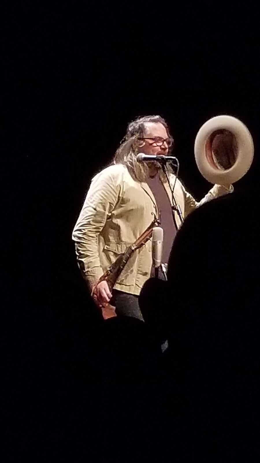 Tweedy told us about the old guitar that he was playing on most of the songs. He said it was from the 1930s and had no resonance. Because, he said, his voice didn’t have any either and he would never want to be shown up by a guitar.
