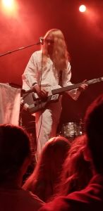 Well, Fascinator wasn’t all that wild.  Lord Fascinator came out with long blond hair and sunglasses wearing a white kaftan, cloth pants (a very different all-white from Andrew W.k.) and interesting shoes.