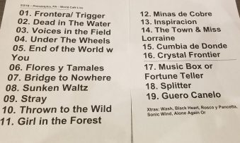 They opened with “Trigger” and that recognizable Southwestern sound. It got the evening off to a fine start. I didn’t want to get too close to the stage, having learned my lesson. But there were a few tall people I had to navigate around.