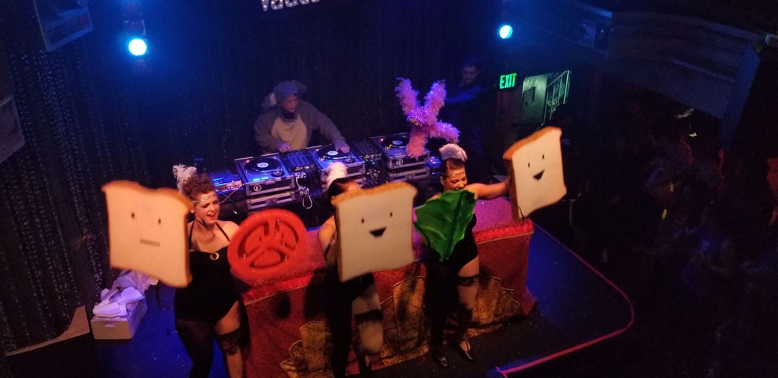 Kid Koala hadn’t formally released an album since 2012’s 12 Bit Blues. (More on the new release in a moment). So he played a few songs from that album. One of which inspired these burlesque costumes with the fun dance and choreography from Adira Amram & The Experience.