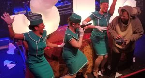 Adira & The Experience came dressed out as Airline Hostesses caring a box from Koalairlines. The box contained hundreds of paper airplanes, which they proceeded to throw all around the audience. Who would have thought