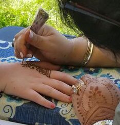 While we were watching, Tabby received a henna tattoo on her hand, which was quite impressive.