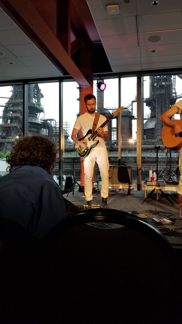 One of the great things about this show and the timing of it was that we were able to watch night descend on Steelstacks as the evening wore on. The show started out gray to be sure, but the windows let in plenty of light as the set began. Then slowly the windows turned blue and then black as the lights of the SteelStacks were lit up.