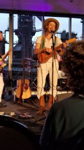 The band sounded fantastic. David Wax played guitar and charango and Suz Slezak played violin and keyboard and accordion. I have to admit I was bummed that she did not play the quijada (donkey jawbone–certainly one of the cooler instruments I’ve seen). She had injured her tendon the night before and it made it hard to hold the instrument. Bummer!