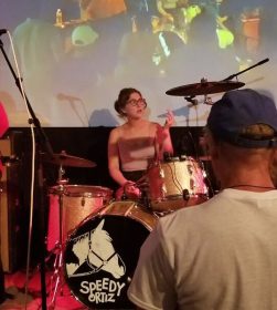 But this band belongs to Jazz Adam on vocals and guitar. She invited anyone of color or non-cis to the front of the audience before the show began.
