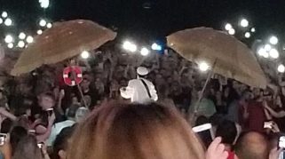By the time things had settled down, we realized that there were two umbrellas in the middle of tha audience. Rivers climbed up between them and sang two acoustic songs. I love when a band acknowledges fans with cheaper seats like that (even if in this case I didn’t have them). He sang the lovely summery “Island in the Sun”